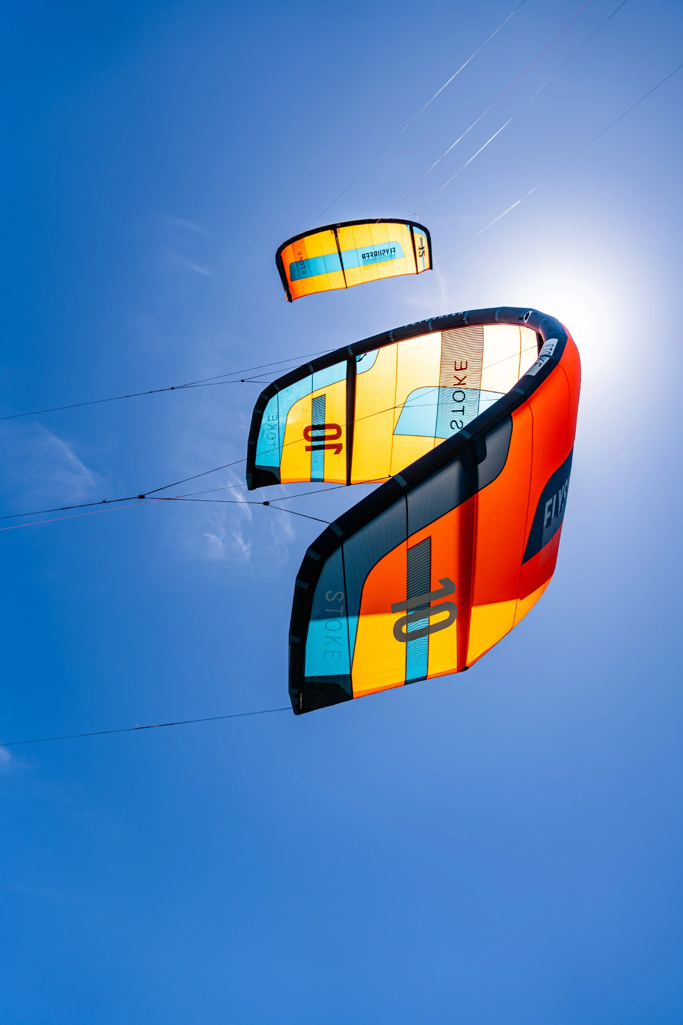 The STOKE⁴ is a 3-strut L.E.I. kite built from Dacron and D2 sailcloth. The three-strut design ensures stability in stronger and gusty winds while keeping the kite light and agile.